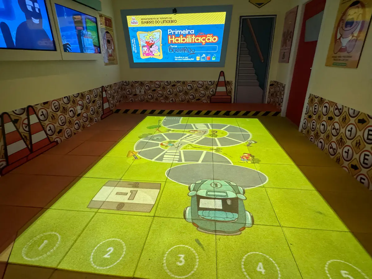 Funciona como um jogo de tabuleiro. Cada vez que você pisar no acelerador, o número de casas que o seu carrinho irá “andar” será sorteado, aproximando você cada vez mais da linha de chegada.