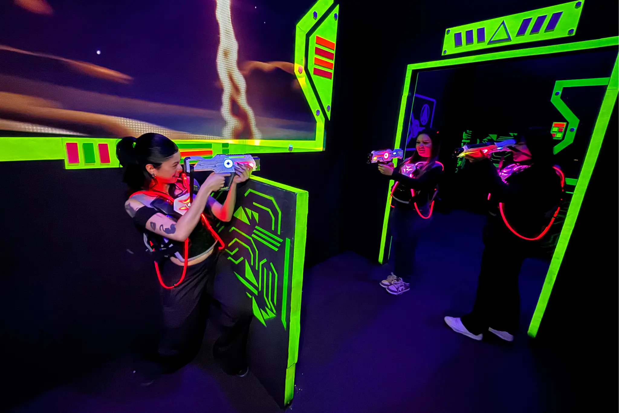 Essa atração convida o público jovem e adulto para um emocionante jogo de laser tag em uma arena lunar, em que dois times se enfrentam em uma disputa cheia de energia, estratégia e diversão.
